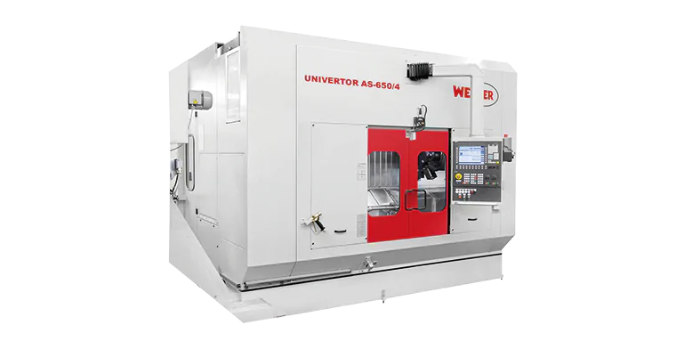 Modular designed, single-spindle pick-up precision turning machine. Designed for complete machining of various batch sizes at low unit costs and with high machining and quality requirements. Due to the automation solution integrated as a pick-up system, no loading devices or separate robot solutions are required. The cross slide of the UNIVERTOR AS, that carries both the motor spindle and the NC tailstock, is designed horizontally. The tailstock and steady rests travel NC-controlled.